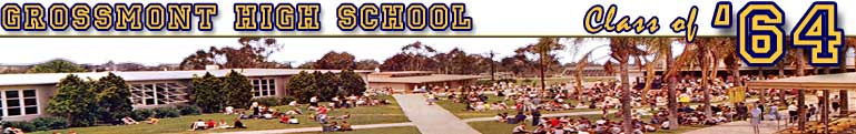 Email Addresses: Click here for the most current list of email addresses. This list is used to communicate to everyone who is interested in information and updates on the Class of '64! We especially want to include everyone who feels they were part of our class whether or not they received their diploma from Grossmont High School in '64 at the formal commencement.